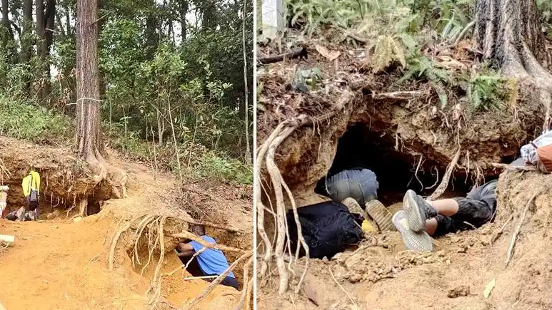 疯狂淘晶热!广州一大山遭人私挖水晶